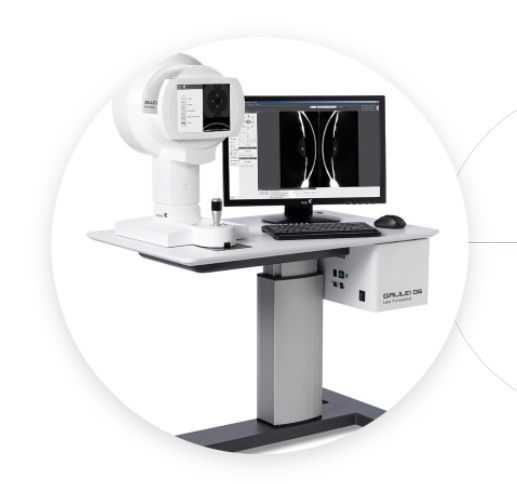 GALILEI G6는 전안부 CT와 각막지형을 통합하여 3차원으로 눈을 분석하는 검사 장비로 1초의 검사로 전방, 후방, 각막 곡률, 전방 깊이, 각막 직경, CCT 등 전안부의 모든 정보를 알 수 있습니다.