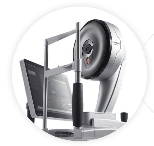 백내장 수술 전 계획과 준비를 돕기 위해 사용되는 안구계측 검사장비입니다. 눈의 길이, 각막 곡률, 수정체 위치 등을 광학적으로 정밀하게 측정하여 인공수정체의 정확한 도수를 계산하는 첨단 장비입니다. 또한 시력교정술인 스마일프로 수술에서 홍채 인식을 통한 정확한 난시 교정에도 중요한 역할을 합니다.
